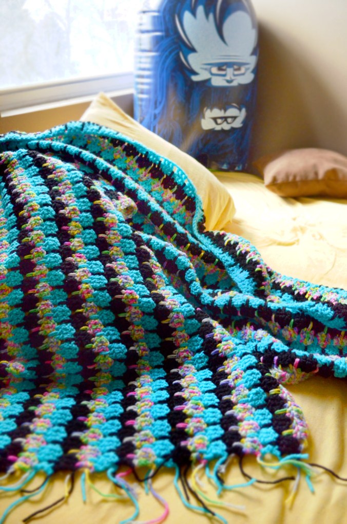 It’s going to be amazing! You could always make the stripes vertical and disguise your ends with tassels. The options are endless! Can’t wait to see the finished afghan! Go you! ^_~