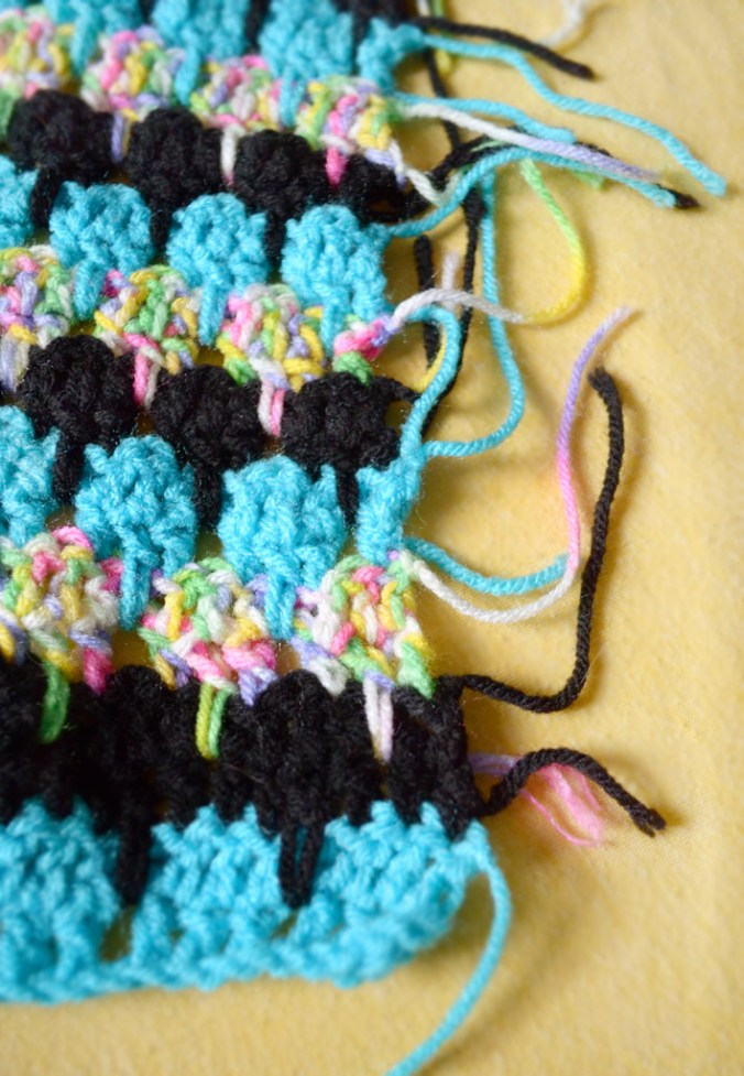 • I think that’s why I chose them to begin with. I wanted to make it as ugly as possible but turns out it’s actually very attractive haha I’m planning on making a border around the whole thing and sewing the ends in that way. We’ll see!