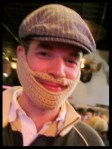 After some trial and error, I finally recently came up with a new beard! This time, I added a fancy moustachio AND figured if I only attached the beard to the hat at one end I could sew a button on the inside of the hat at the other end, making it much easier to take on and off. Evolution, people.